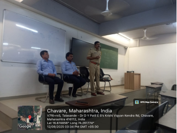 Anti-Ragging Guest Lecture was conducted as part of the Orientation Program. The session featured Inspector PramodShinde, Incharge of Vadgaon Police Station, who addressed students on the issue of ragging in educational institutions. During the lecture, Inspector Shinde explained the legal framework, university rules, and disciplinary measures designed to prevent ragging. He highlighted the rights of students, the serious consequences of engaging in ragging, and the importance of maintaining a safe and respectful campus environment. The session created awareness among students about their responsibilities and encouraged them to foster a culture of discipline, safety, and mutual respect within the institution.